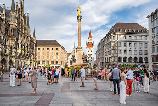 (Marienplatz in front of the New Town Hall in Munich, GNTB/Dagmar Schwelle)