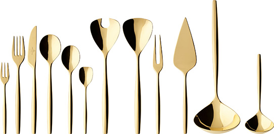 The fine details in 20 carat real gold make this service an elegant choice for special occasions. Future brides and grooms who are still looking for ideas for their wedding list can complete their dinner service with the cutlery collection of the same name (in high-quality stainless steel with a gold finish) or the matching MetroChic glasses made of crystal glass, which, with their extra- fine stems and slightly angular goblets, echo the geometric lines of the dinnerware and thus create a harmonious ensemble.