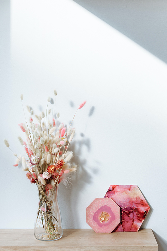 My entire philosophy as an artist is to bring art to everyday life. That’s why you will always find me creating items that are around us on a daily basis. This includes everything from wall art and home décor to gifts and wallpapers. I like to make artwork that people just want to pause and observe. There is so much beauty in our natural world and so much to take inspiration from as an artist. The textures, patterns, and colours of naturally forming geodes are what I explore with this collection of artworks, aiming to bring the lure of these organic forms to our inside spaces. ”Working with resin, inks, and various mixed media, I strive to recreate the outside world, often incorporating a rich and varied colour palette, along with a range of metallics for added opulence.