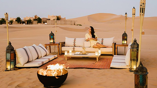Al Mabeet Desert Camp in Al Wathba, Iftar marries Bedouin traditions with modern luxury. Surrounded by quiet dunes, the menu blends classics like lamb and rice with fresh, contemporary twists. It’s a simple yet profound experience—sharing food under the vast desert sky feels like a step back in time, but with all the comforts of today. The stillness and starlight make it unforgettable.
