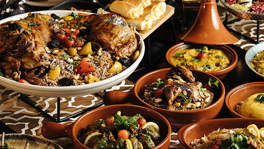 Cyan Brasserie’s “Taste of Togetherness” Iftar feels like a family affair. Partnering with influencer @mrm.blog, they serve her grandmother’s recipes—lamb ouzi, tajin—on a terrace with killer sunset views. Live stations keep things interactive, and the cozy décor warms your heart. Book early for a 20% group discount, and enjoy a meal that tastes like love.