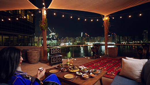 GLO’s terrace offers a Suhoor experience both chic and peaceful. The à la carte menu blends Middle Eastern staples with international flair, and for groups of 10 or more, there’s a set menu that feels like a shared celebration. As you dine, the city lights glitter below, and a gentle breeze sweeps in from the Gulf. It’s a serene escape—perfect for a quiet night with someone special or a laid-back catch-up with friends.
