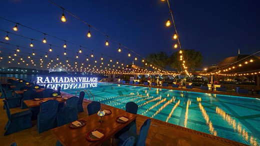 The outdoor terrace sparkles with fairy lights. The buffet features Lebanese favorites like grilled meats, tangy mezze, and refreshing Ramadan juices. Live oud music drifts through the night, adding a soulful touch to every bite. It is a place that feels festive yet relaxed, like a warm hug from the Middle East, making it ideal for a late-night gathering with friends or family.