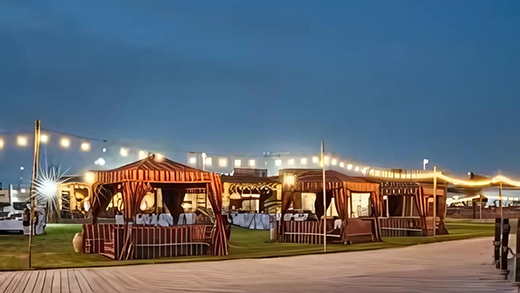 Bab Al Qasr Tent is where Suhoor feels like a royal escape. The tent glows with soft lantern light, and the air carries the rich aroma of spices. The menu is a gourmet delight—creamy hummus, tender lamb, and bites so refined you’ll feel like a VIP. It’s an intimate setting, perfect for lingering over tea or coffee as the night stretches on. The beautiful surroundings and friendly hospitality make it a great place to relax after a day of fasting.