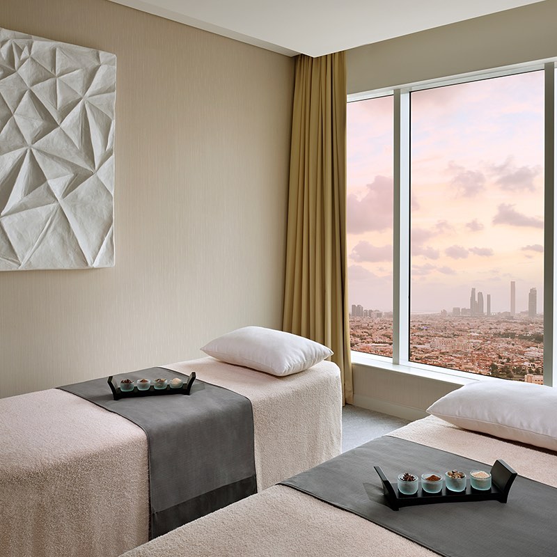 The spa is both classy and pampering and has the only quartz sand therapy in the entire Emirate. Intimacy, extravagance and complete relaxation are the core values of the wellness centre. With spacious and welcoming treatment rooms with white interior and mashrabiya. Spa treatments are available in 60-and 90-minute variations but guests can customise it up to 2-hour treatment. With fresh scents and soothing music, guests can enjoy treatments from high-end brands.