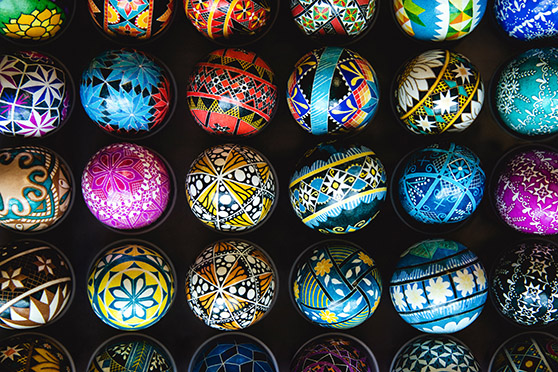 Meaning: Easter eggs in Ukraine are known as pysanky. And no, they are not your usual-sized eggs dipped in food colouring. These eggs are quite big and are dipped in special dyes and melted beeswax to create beautifully crafted geometric patterns. They are kept as a sign of good luck, happiness, and fertility. Most of these eggs are painted red, orange, blue, and pink and are inscribed with Christian symbols like a cross or a fish.