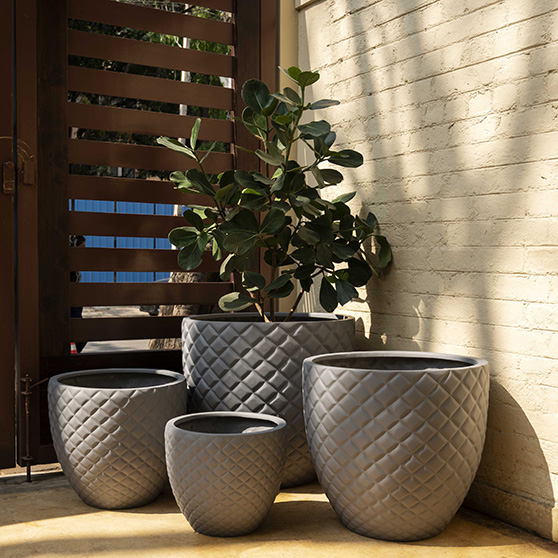 Large sets of clay planters come in handy for outdoor spaces. They are natural, and sustainable and add a pinch of chic effortlessly. Clay planters come in a variety of shapes and patterns. If you are feeling a little edgy, you can opt for ones with paint detailing on them to bring in a more artistic flavour.