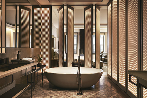 Ideal for business or leisure guests alike, the hotel’s 83 suites are among New York’s largest and are inspired by the airy architecture of Aman’s properties in Southeast Asia. An invitation to switch off from the outside world, every suite also offers a functioning fireplace, a first in New York City, while bathrooms are opulent and oversized with oval soaking bathtubs, marble rain showers and double vanities. Large windows offer dynamic views, and the use of organic, natural materials and muted tones brings a sense of balance and harmony reminiscent of that found in Aman resorts of the East.