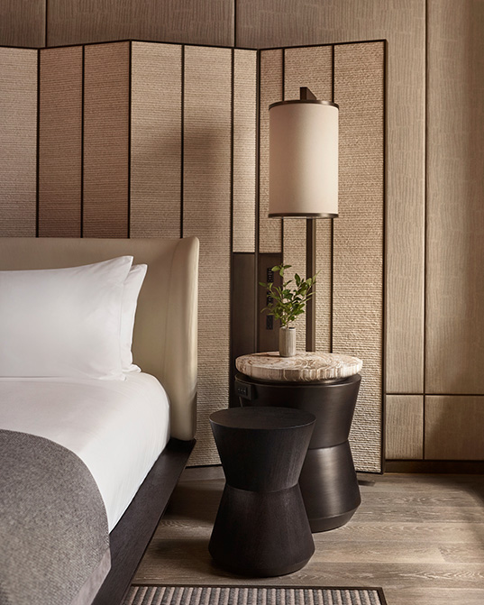 In a further nod to the brand’s roots, each suite also features a large-scale mural by contemporary Japanese artist Ryoko Adachi and inspired by the 15th-century masterpiece Pine Trees (Sh?rin-zu by?bu) by Hasegawa T?haku. One of Japan’s most celebrated works, Pine Trees was designated as a National Treasure in 1952 and is internationally acclaimed. Adachi’s recreation of the piece perfectly captures its eminent pre-Edo influence and is a homage to T?haku, printed on delicate rice paper and spanning the walls as a captivating focal point.