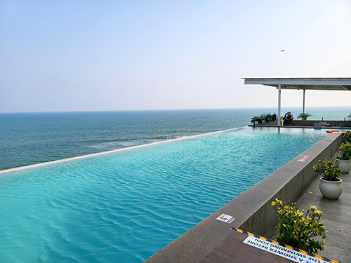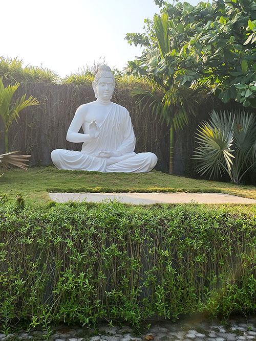 The wellness center is a unique place and consists of many different areas. There are lush green lawns for meditation, or you could choose to quietly lounge in a corner with your favourite book. There is a huge statue of Buddha, under which meditation takes place every morning. There are large lawns to play games, nice benches to lounge around in and of course a very large infinity swimming pool on the roof of the resort, where you can swim to the view of the Bay of Bengal – from a distance it looks as if you can straight away jump into the sea! A state-of-the-art gym with the latest equipment looks after your exercise regime as well.