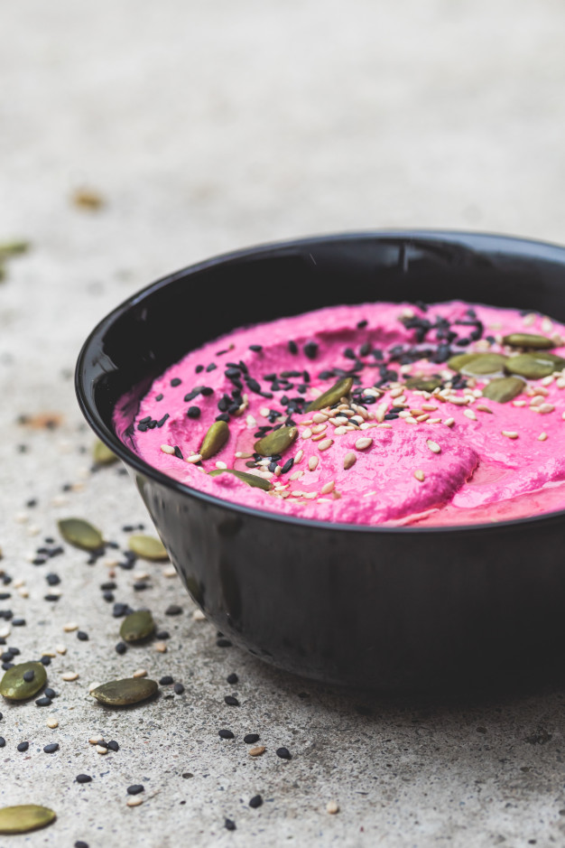 A must-add if you’re vegan or simply need something eye-pop, beetroot is essential for improving immunity, metabolism and losing weight. Besides a pure beetroot dip, you can enhance its health quotient by making it with hummus which only adds more credit to this healthy and yummy spread.