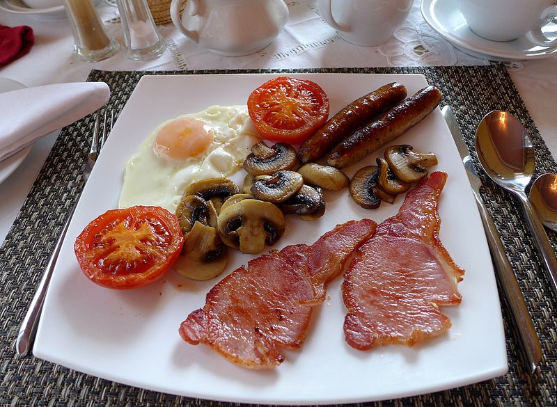 The hearty British breakfast would consist of cereals, fruits, fresh juices with tea or coffee. A traditional British breakfast will have eggs, sausage, bacon and black pudding.