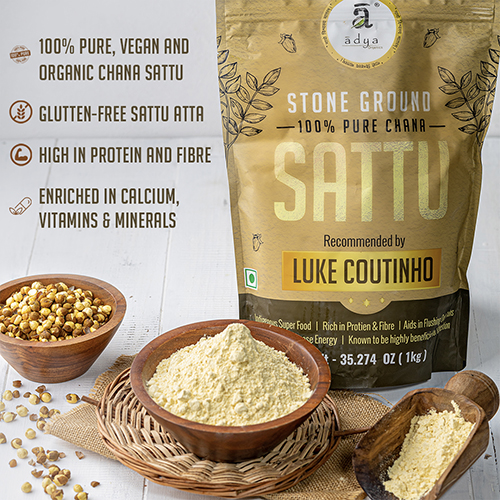 Adya Organics Sattu Powder recommended by Luke Coutinho is obtained from Black Channa using the dry-roasting method so that none of the nutrients are lost in the process. The Black Channa used for obtaining Sattu is sourced from the Bahiyara farm in Bihar, where Sattu is widely used and is a staple food of the farmers. The dry-roasted chana is later put through a stone-grind process.