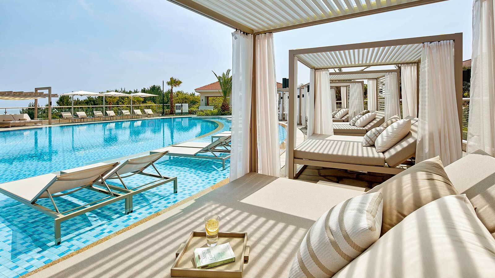 Bayhill Pool and Villa is a luxury hotel in Seogwipo hotel near Jungmun beach with a full-service Spa. The Villa also features a captivating spa experience, an Outdoor pool, children's pool, poolside bar, restaurant, and a coffee shop. Bayhill pool has three separate spa rooms for couples and those who want to enjoy the scenic view outdoors. You can either enjoy the hot tub or go for facials, massages, body scrubs, body treatments or even aromatherapy.
